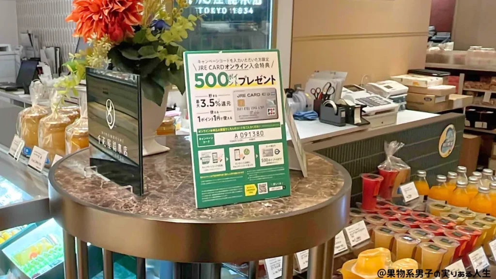 千疋屋総本店のアトレ目黒店では、アトレのポイントカード以外にJREポイントが貯まります。